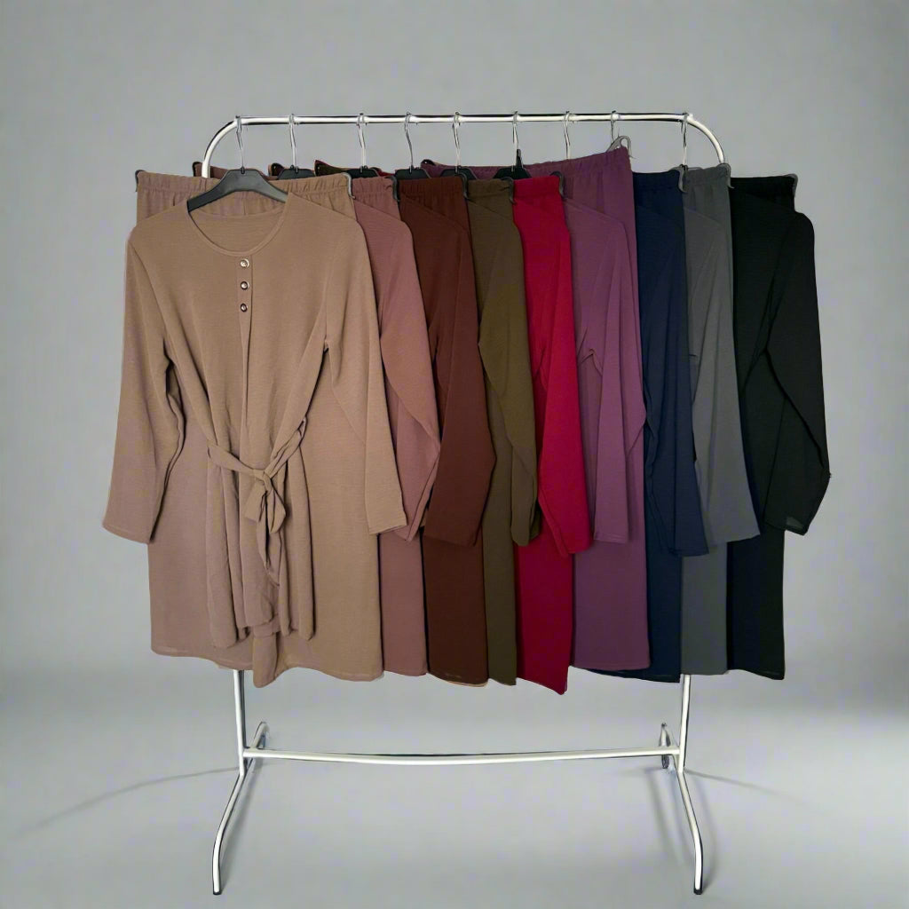 Elevate your everyday style with our Belted Co-Ord Set, designed for comfort and elegance. Crafted from 100% polyester, this versatile two-piece comes in a range of beautiful colours, making it perfect for both casual wear and smart occasions. The top features a relaxed fit with a matching belt for a flattering silhouette, while the trousers offer a stretchable waistband for all-day comfort.