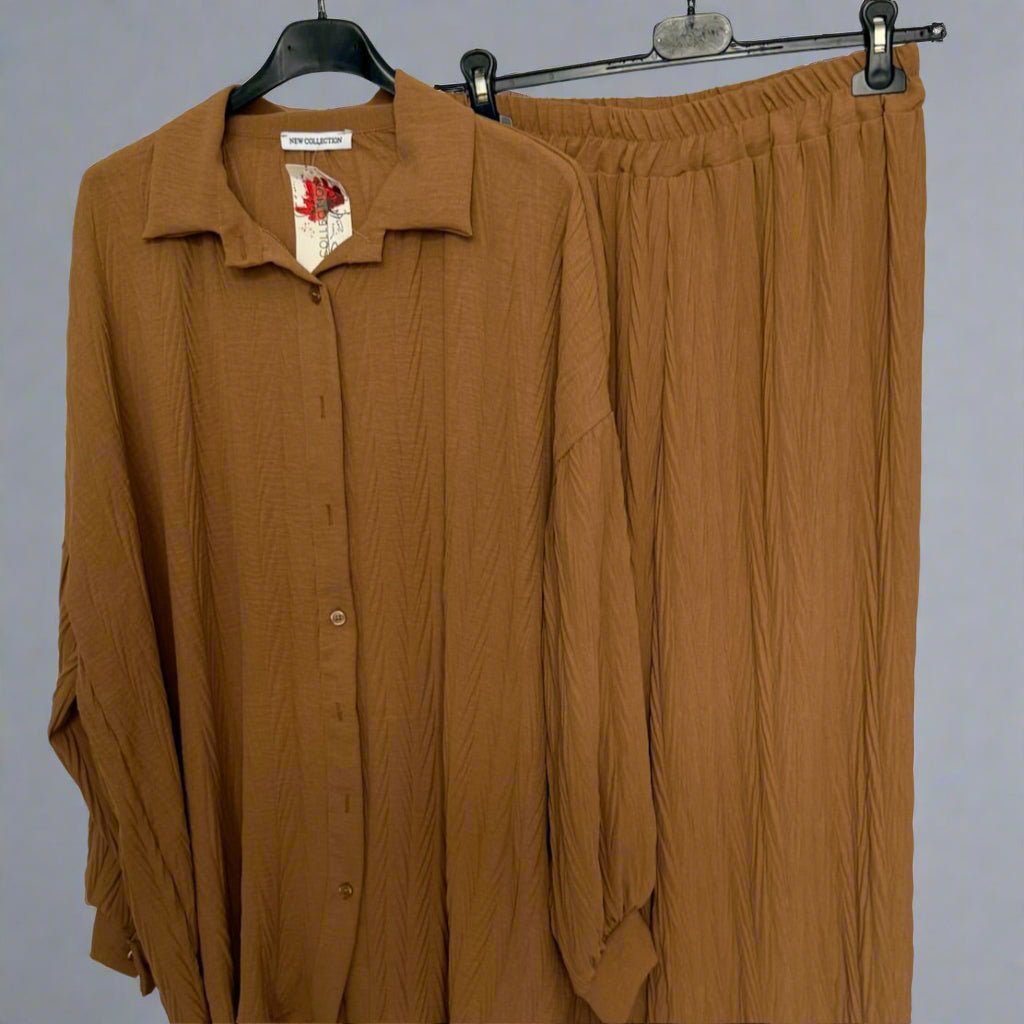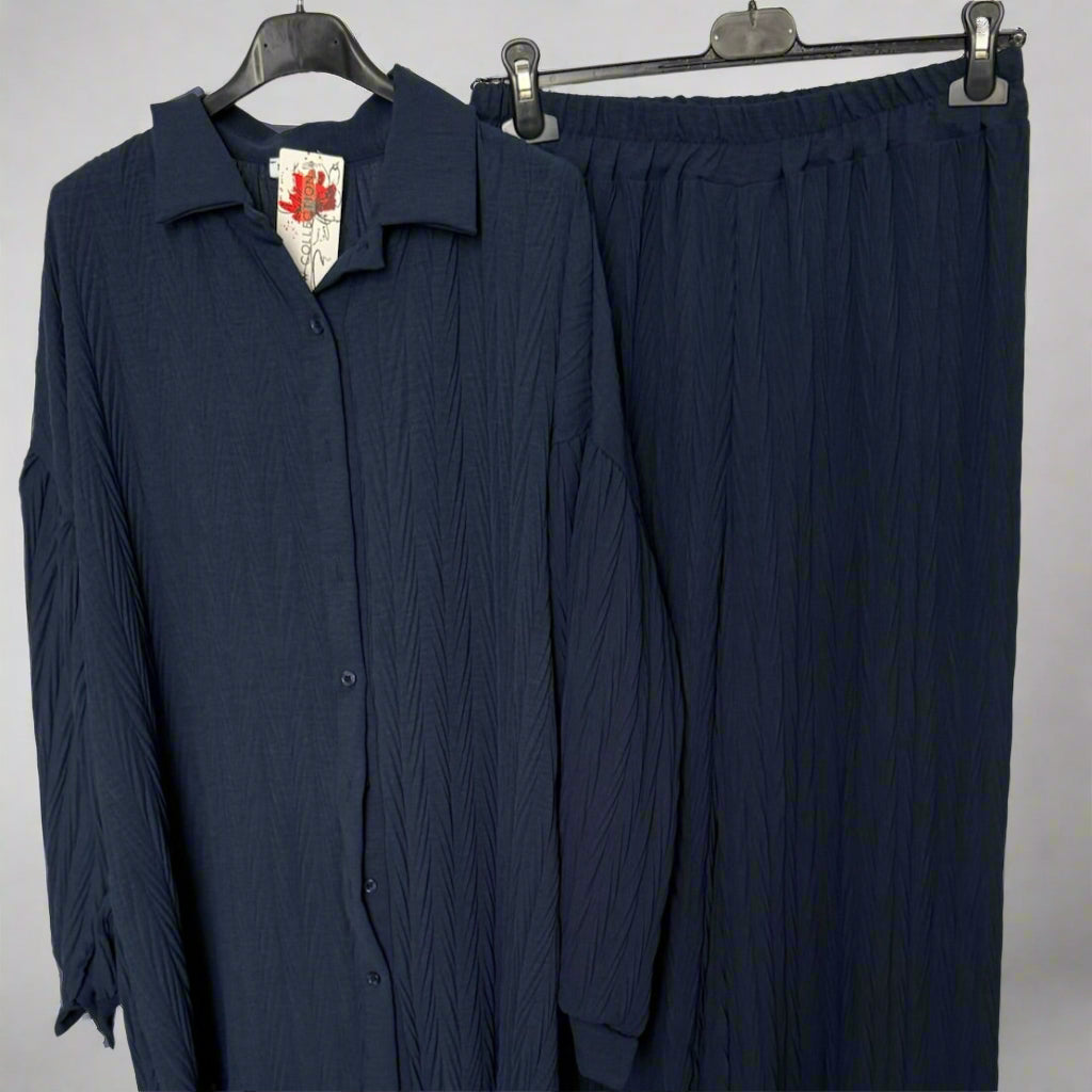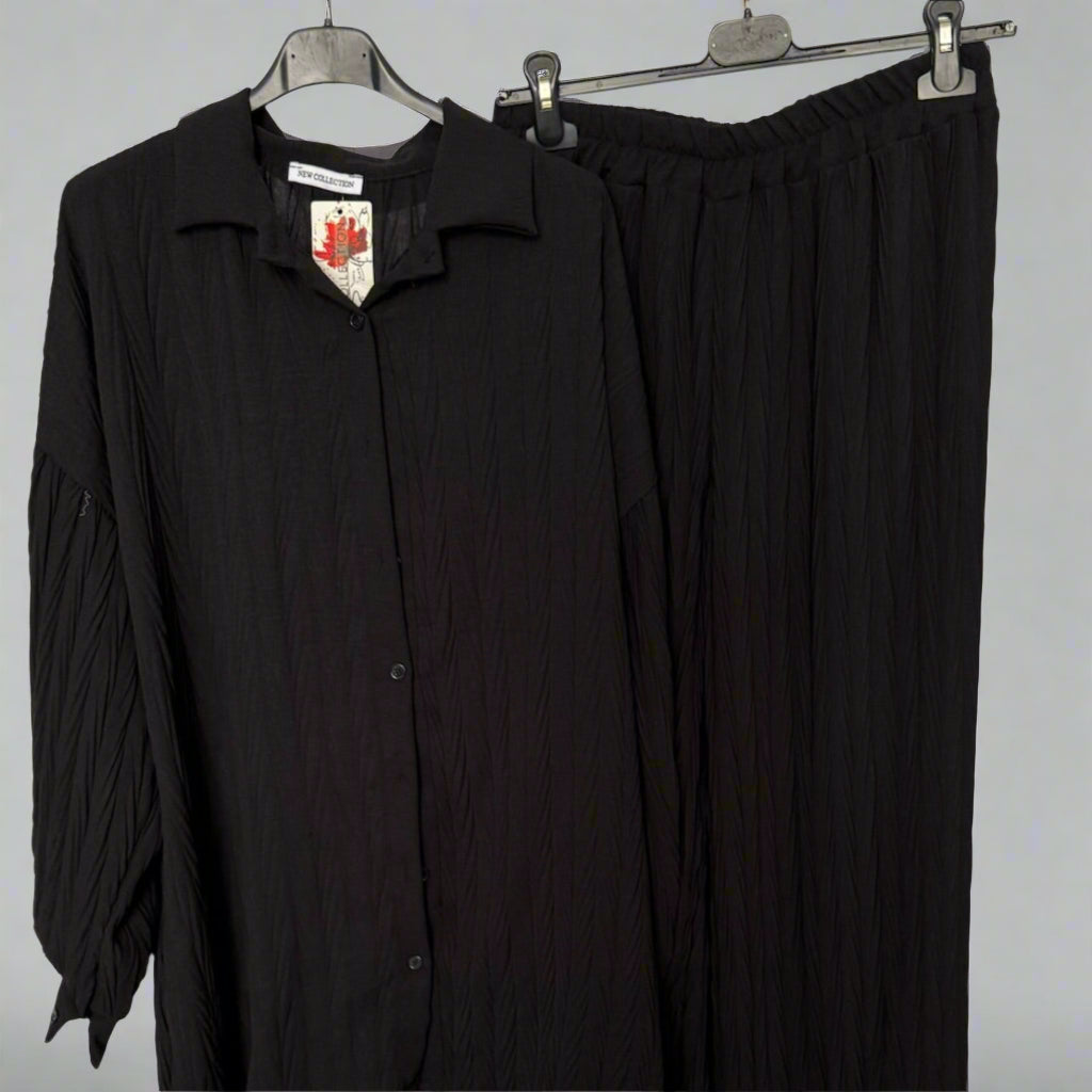 Elevate your everyday style with our Crinkle Co-Ord Set, designed with comfort and effortless elegance in mind. Made from 100% polyester, this lightweight two-piece set features a textured crinkle finish that adds a touch of uniqueness while keeping it versatile for both casual days and dressier occasions.