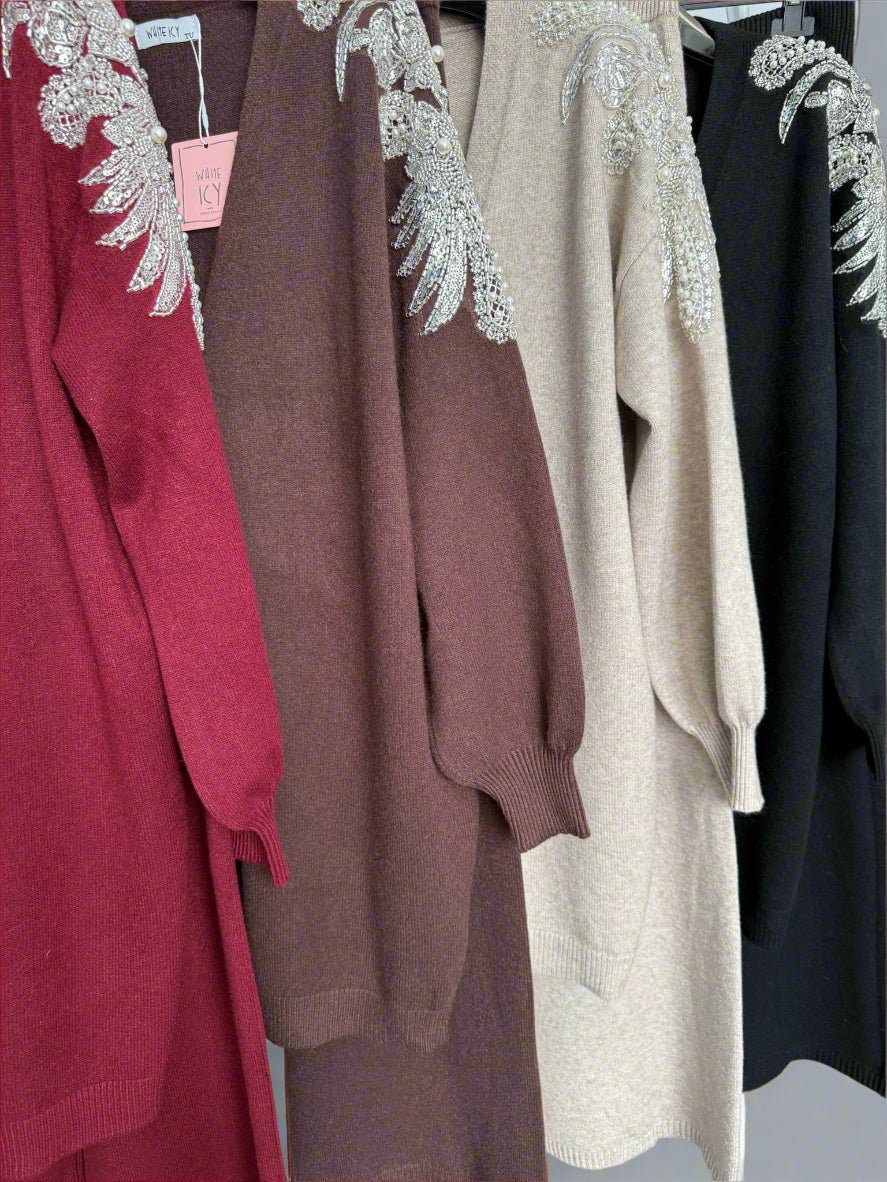 Bring elegance to your everyday look with our Embellished Shoulder Cardigan Set. This two-piece features a beautifully detailed cardigan with shimmering shoulder embellishments paired with matching trousers, creating a chic and coordinated outfit. Designed for both comfort and glamour, it’s perfect for casual outings, special occasions, or layering through the seasons.