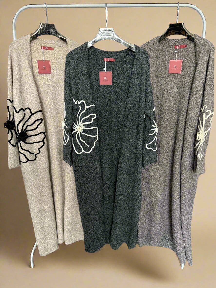 Wrap yourself in effortless elegance with our Floral Embroidered Long Neutral Cardigan. Designed with striking floral embroidery on the sleeves, this statement piece blends comfort and style, making it the perfect layering essential for cooler days. Its neutral tones ensure easy pairing with any outfit, while the embroidered detailing adds a touch of sophistication.