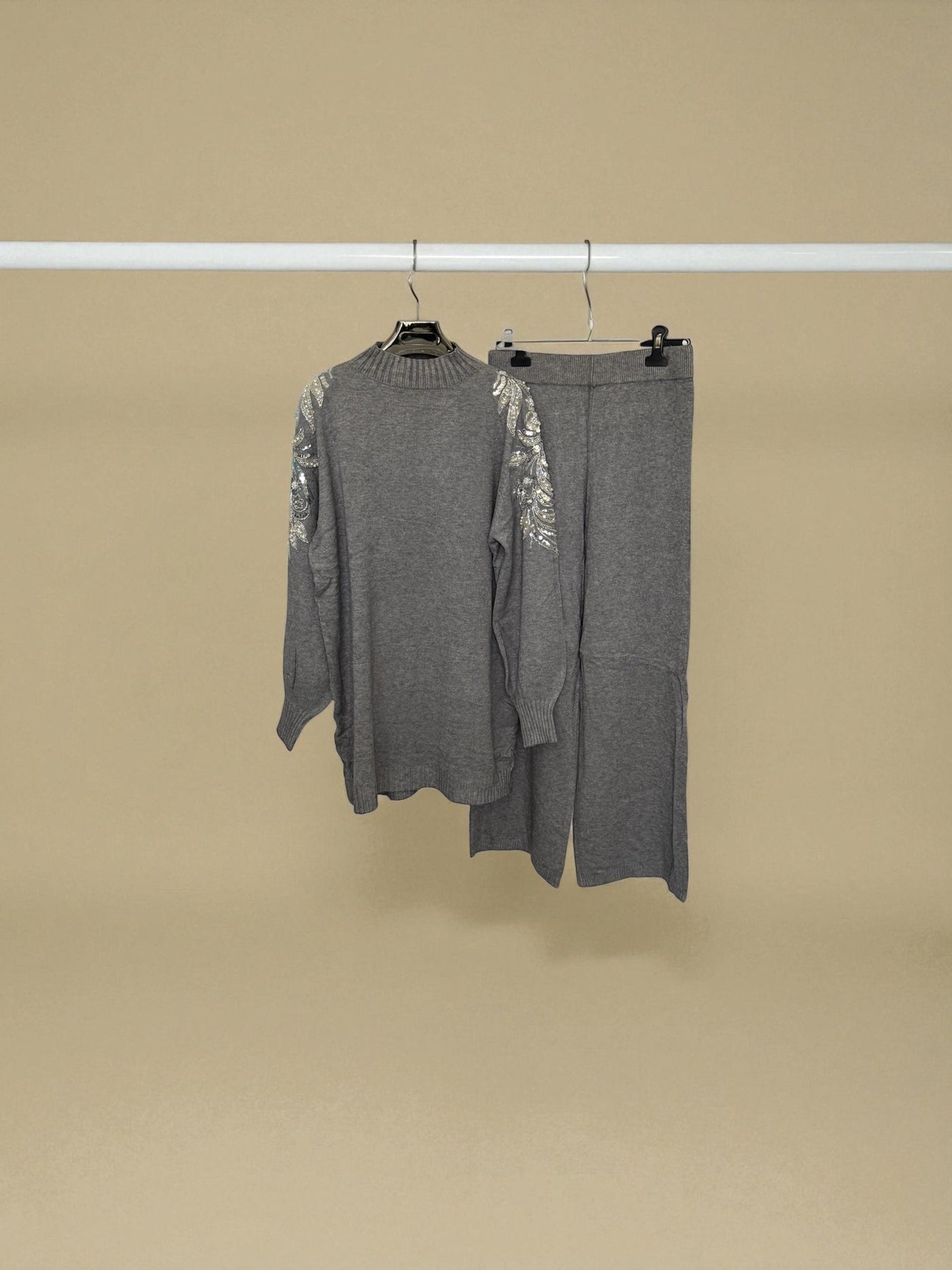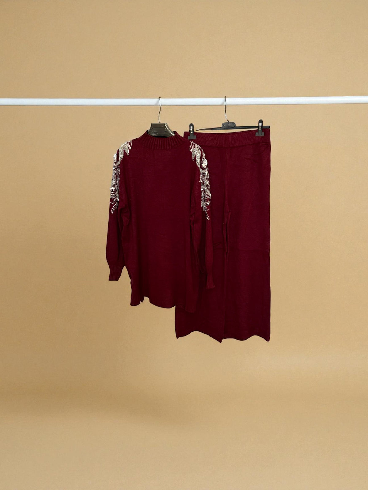 Make a statement this season with our High Neck Embellished Set — where comfort meets elegance. Designed with intricate sequin and bead detailing on the shoulders, this co-ord offers a touch of glamour while keeping you warm and cosy during the colder months.