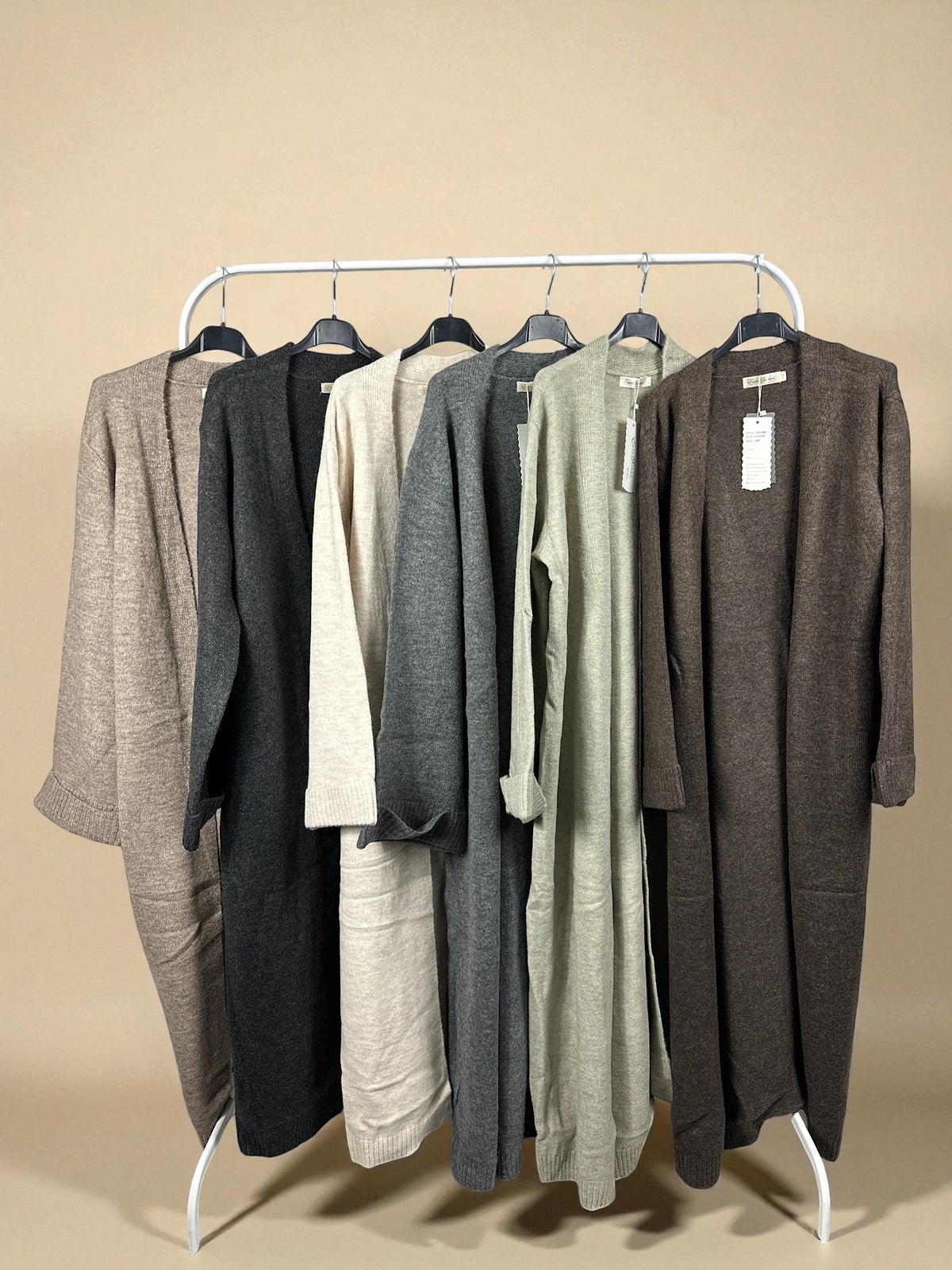Details: Full-length open design with ribbed cuffs and hem, relaxed fit for easy layering, and available in a range of neutral tones for a timeless, versatile look.