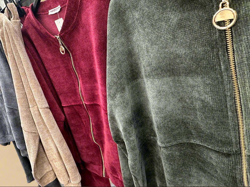 Available in a variety of colours, this co-ord includes a zip-up top with matching trousers — versatile enough for lounging at home or stepping out in casual style.