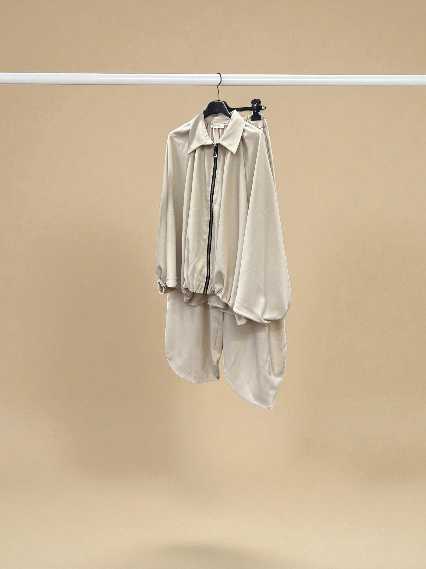 The collared zip-up top adds a modern, structured touch, while the relaxed-fit trousers provide all-day comfort without compromising on style. Whether you’re running errands, travelling, or enjoying a casual day out, this set delivers a modest silhouette with effortless appeal.